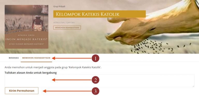 - Klik pada kelompok yang diinginkan, misal kelompok katekis, dan klik "MEMOHON KEANGGOTAAN"