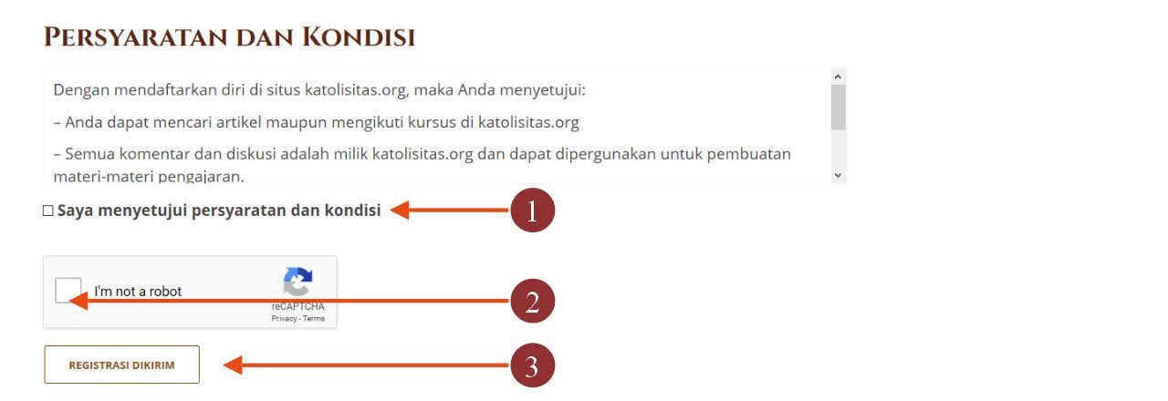 - CARA 2: Mengisi semua informasi yang diperlukan. Setelah semua diisi, maka pada bagian bawah, klik: MENYETUJUI PERSYARATAN, I'M NOT A ROBOT, REGISTRASI DIKIRIM