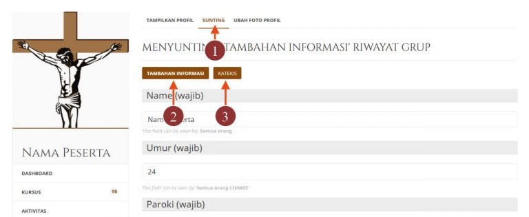 Untuk umum, maka disediakan 2 kelompok, yaitu kelompok Katekis dan kelompok katekumen. Setelah LOGIN atau SIGN UP, maka Anda dapat melakukan langkah berikut ini: